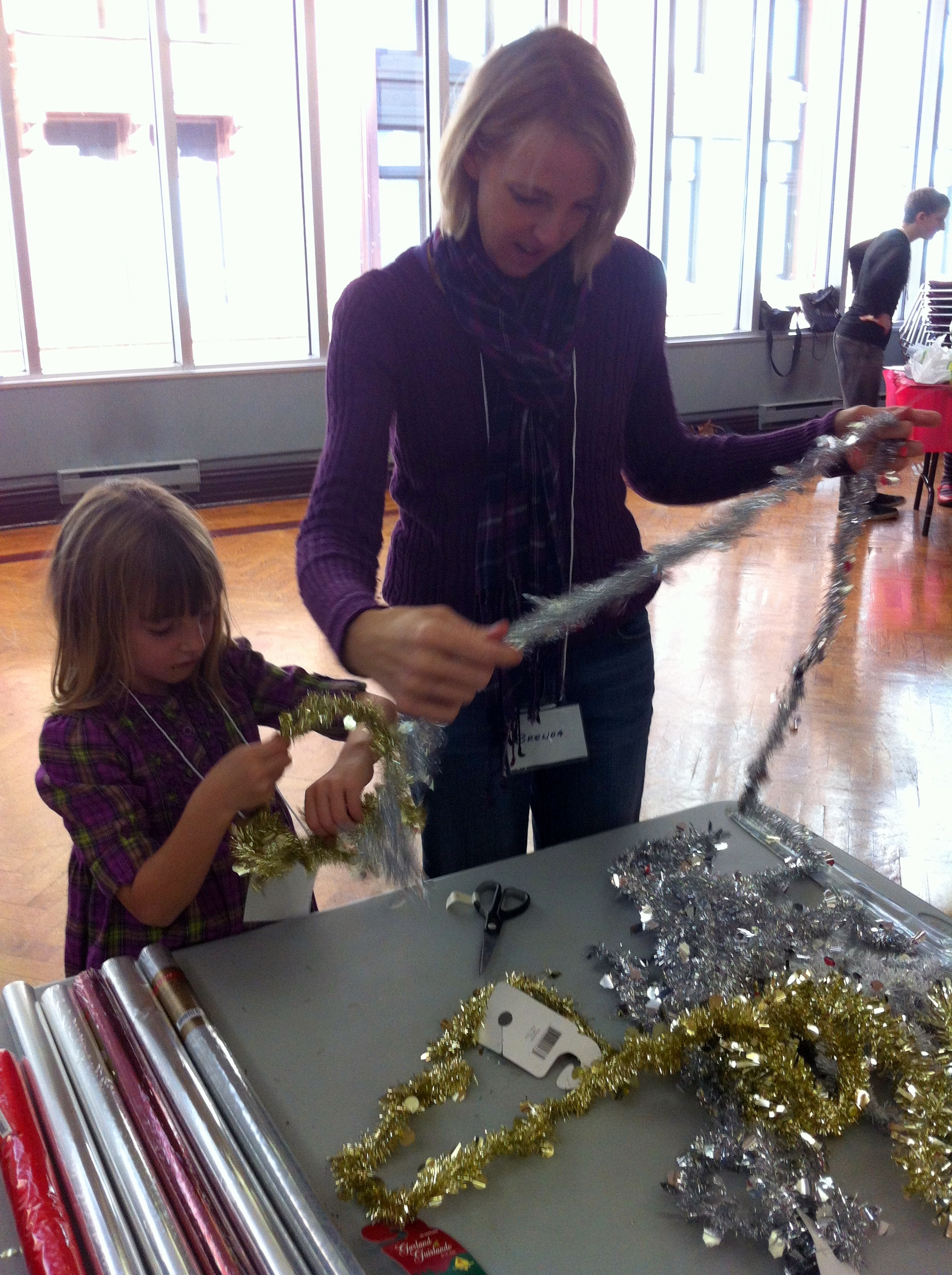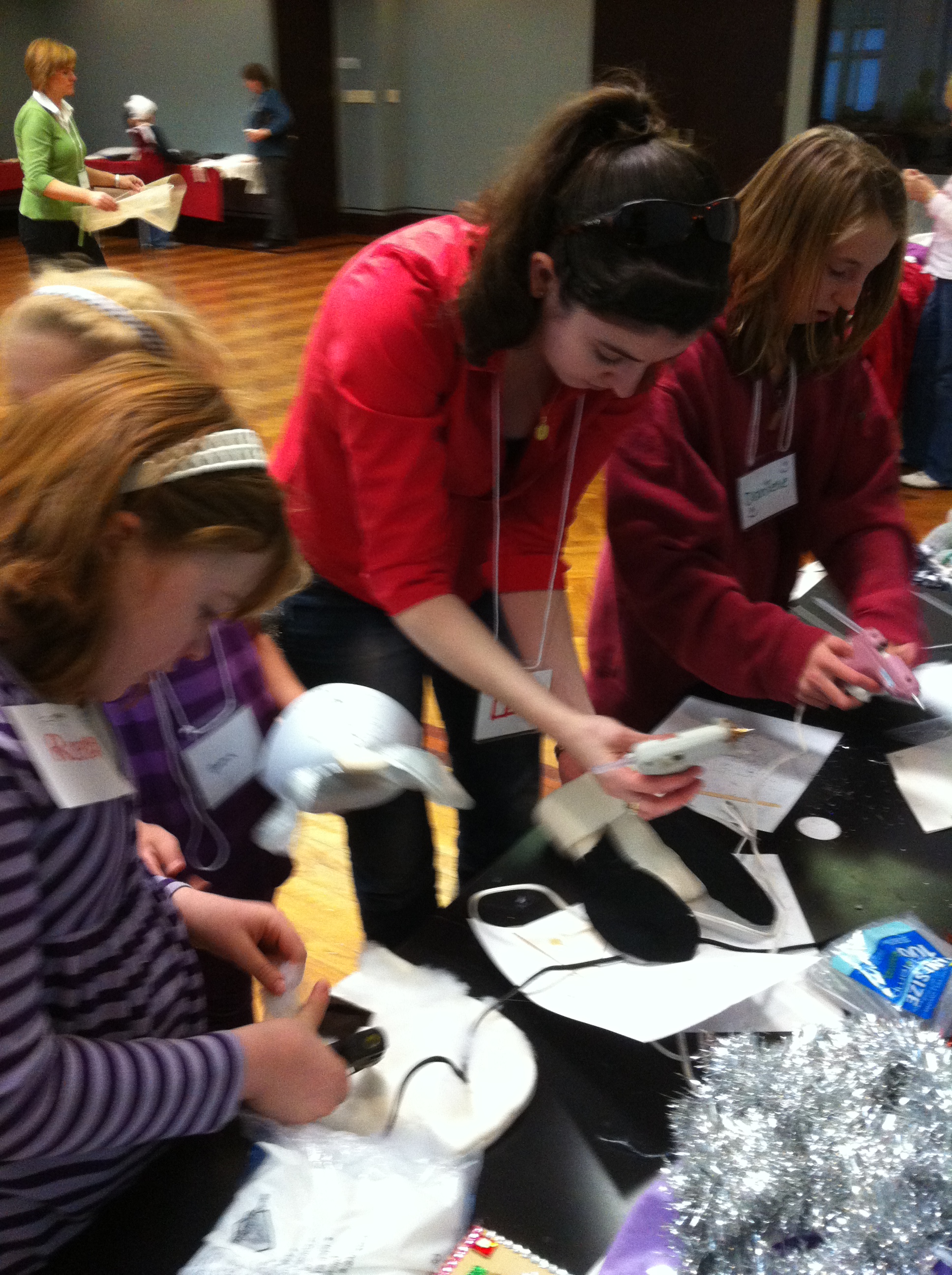 The Kidstuff Working Bee on Saturday, November 10th, was a great success as crafty kids and adults joined together to turn toques into sheep and donkey hats, coat hangers into angel wings, cardboard boxes into treasure chests, and bedsheets into cloaks.